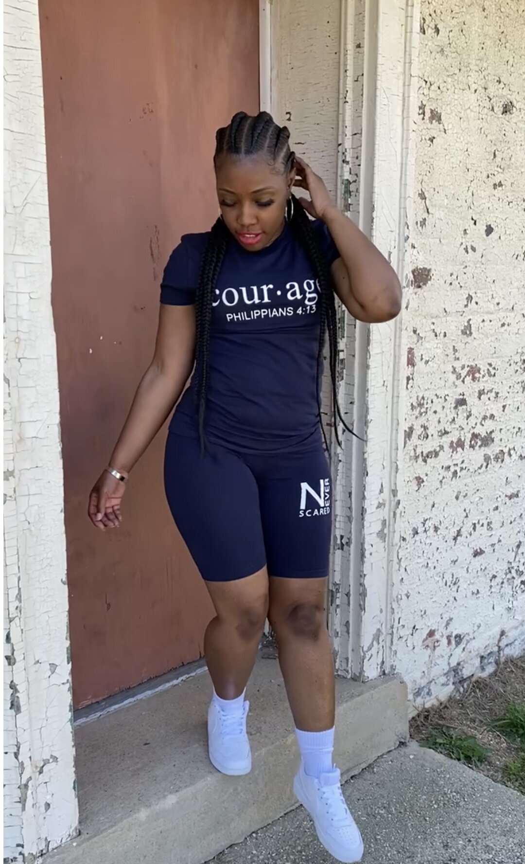 COTTON ROUND NECK TOP ; BIKE SHORTS SET